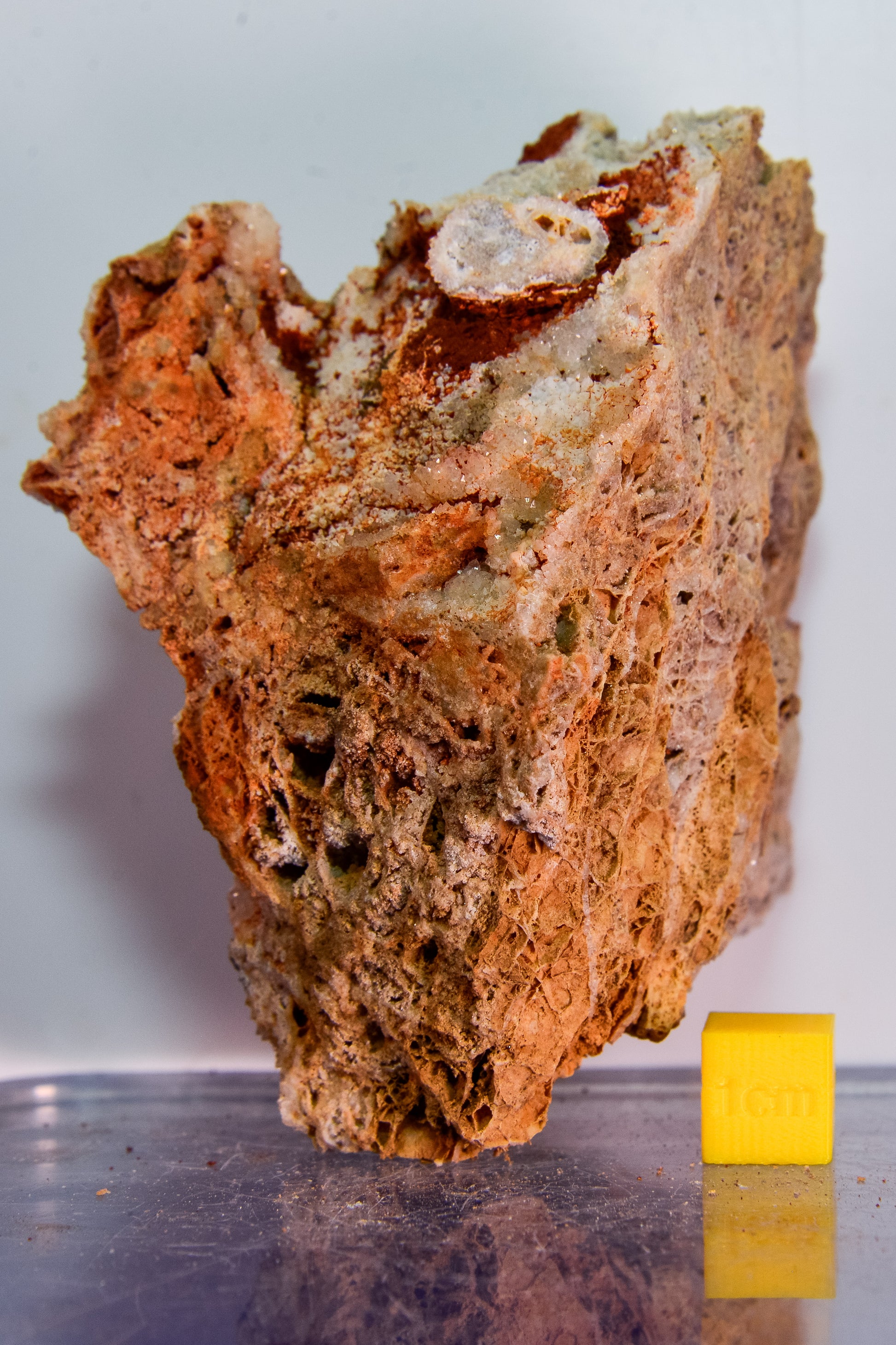 The vibrant orange, ochre, and rust-red colors seen in your specimens are the result of iron oxide staining, primarily from minerals like limonite (FeO(OH)⋅nH2O) and hematite (Fe2O3). During the final stages of the stone's life in the mountain, iron-rich waters seeped into the hollow boxwork, leaving behind these mineral pigments. In the specific context of the Xianyan Cave locality, this boxwork quartz is highly significant because it demonstrates the intense hydrothermal "boiling" that occurred near the volcanic vents, providing a structural map of the ancient fractures that once carried mineral wealth through the earth.